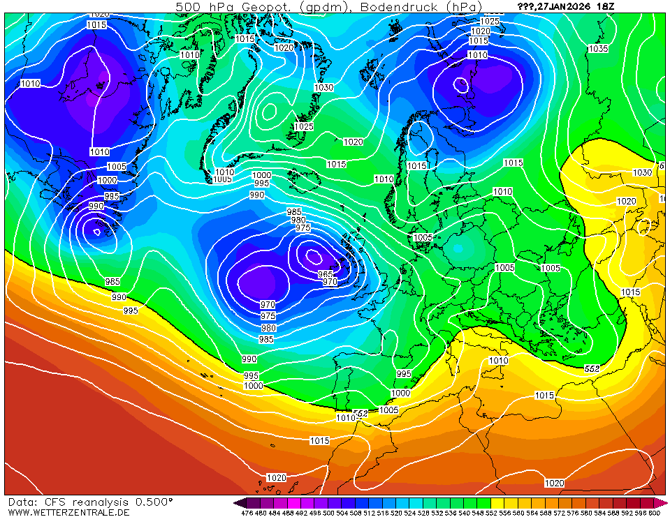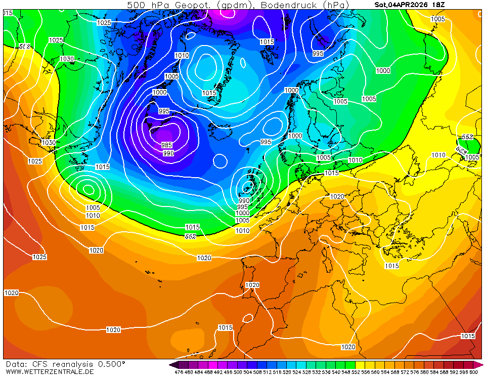 NCEP Climate Forecast System Reanalysis (CFSRv1) is een gekoppeld atmosfeer-oceaan-landoppervlak-zeeijs systeem om de beste schatting te geven over de 32-jarige periode 1979-2011. Na deze datum gebruikt wetterzentrale de CFSRv2 data (0,5 graad resolutie) die in realtime beschikbaar is. Technische details zijn beschikbaar in